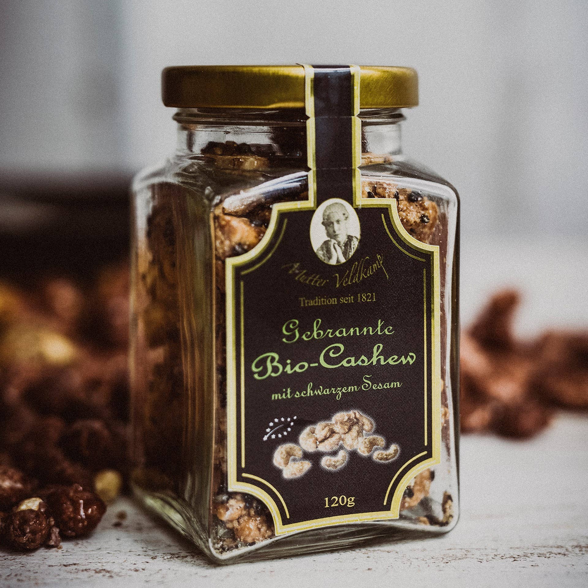 Hamburger Goldmandeln | Bio Cashew mit Schwarzem Sesam Im Glas 120G